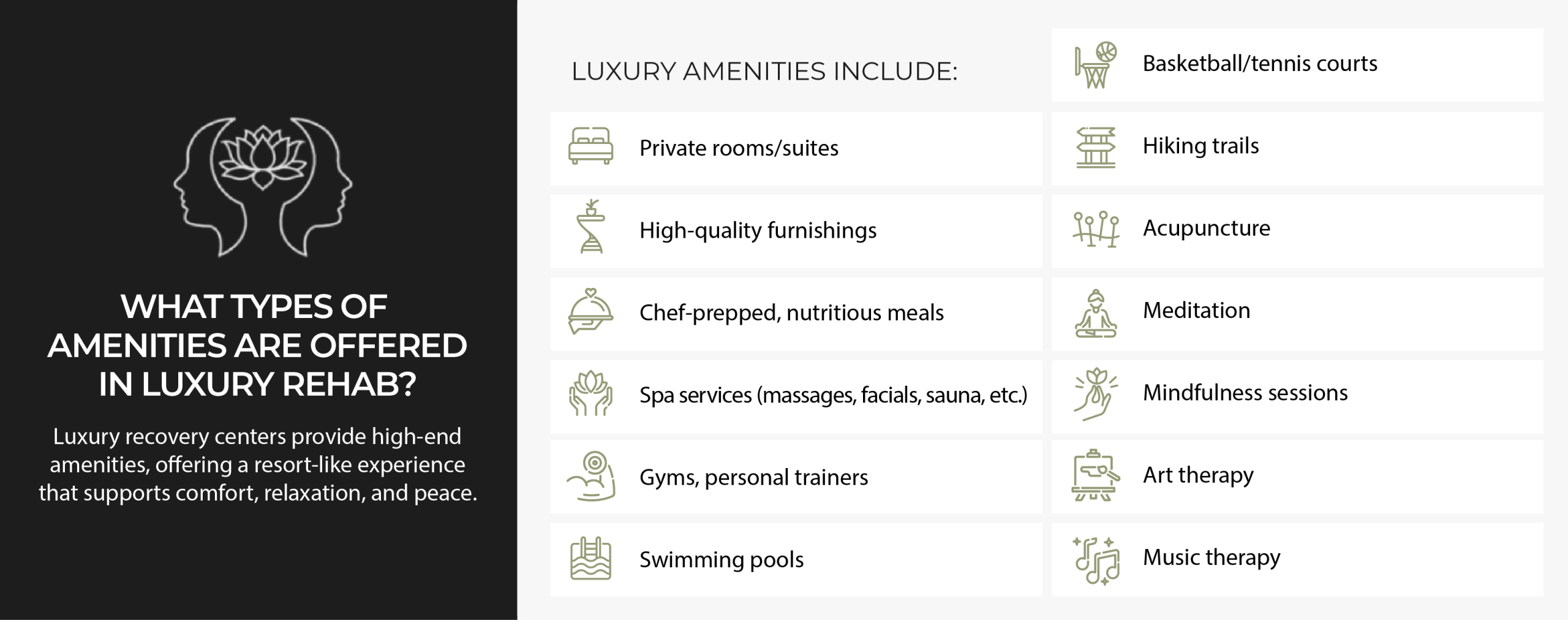 The general strengths of a luxury rehab program include: